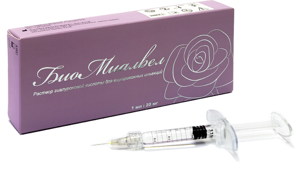 BioMialvel No2 – средний по плотности бифазный филлер на основе гиалуроновой кислоты, обладающий эффектом биоревитализации. Применяется для устранения выраженных возрастных дефектов кожи, а также инъекционной пластики зон лица.