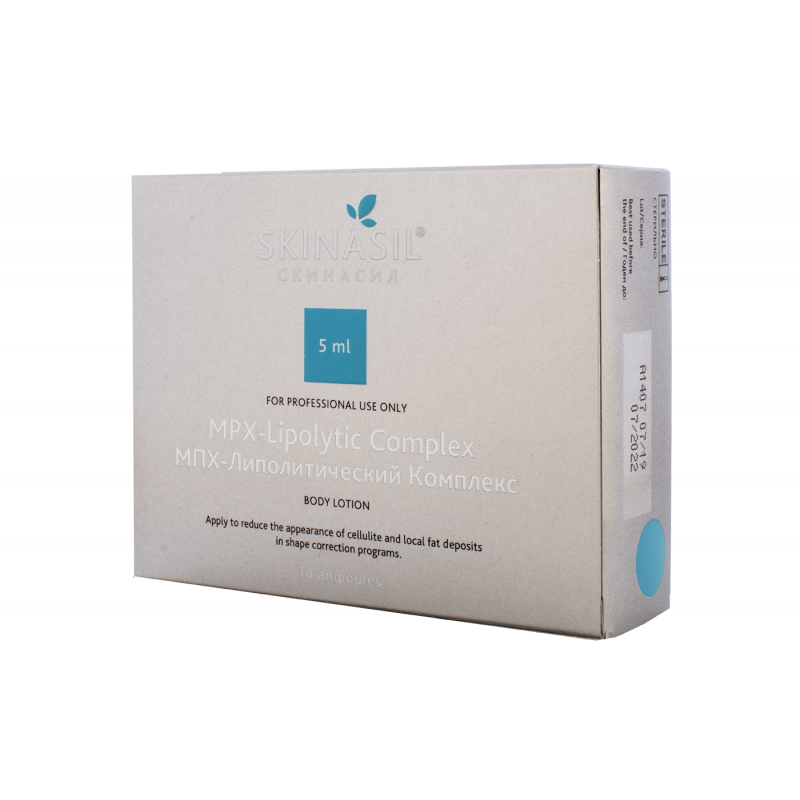 Skinasil MPX-Lipolityc Complex – препарат для мезотерапии, предназначенный для устранения жировых отложений на теле и действующий на клеточном уровне. Предназначен для коррекции первых признаков изменений на молодой коже и как завершающий элемент курса терапии на возрастной.